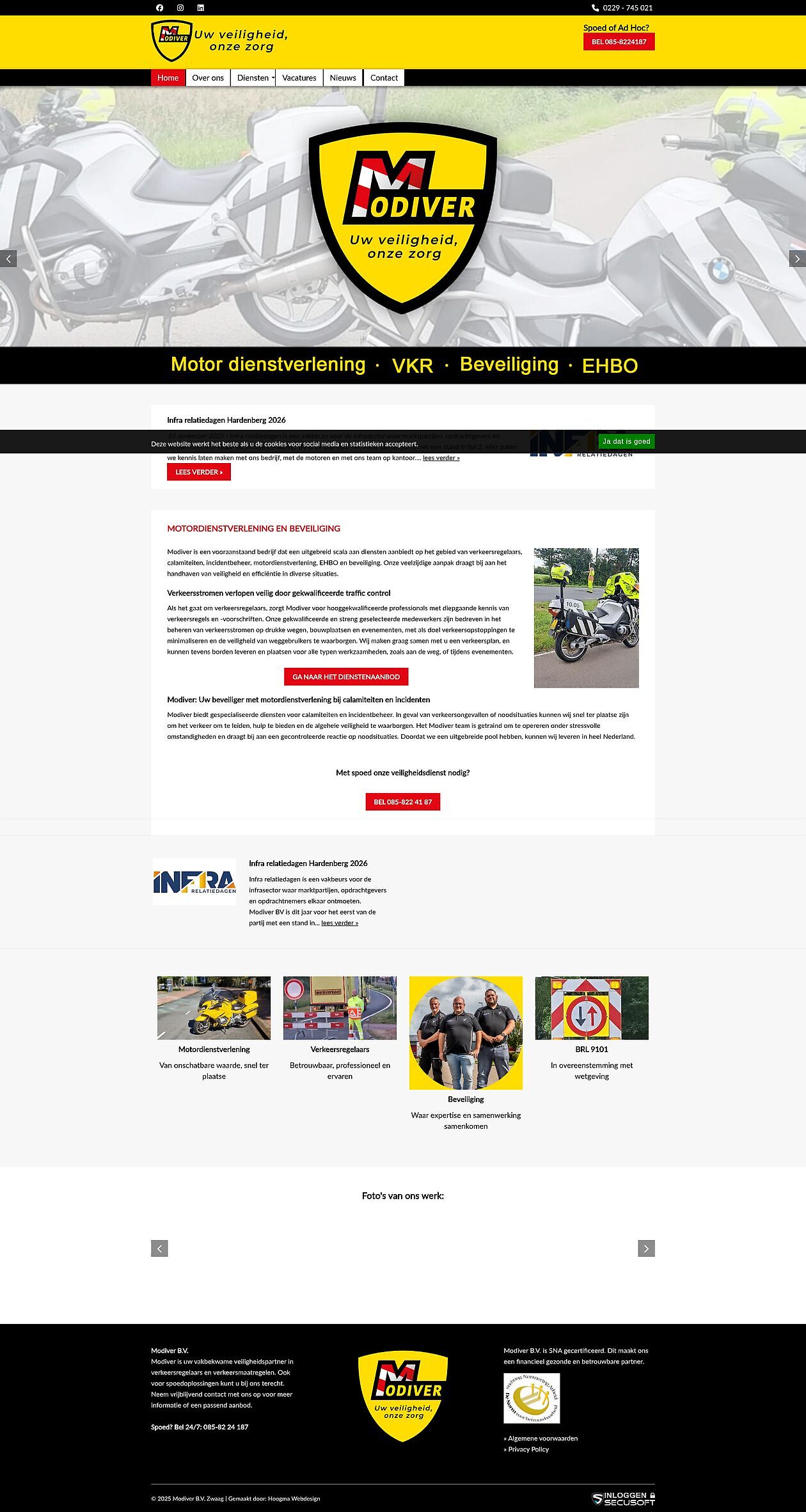For Modiver in Zwaag, we developed a clear and fresh website that perfectly matches their recognizable image. Modiver is a leading company offering a wide range of services, including traffic controllers, emergency and incident management, motorcycle services, first aid, and security. With their versatile approach, they ensure safety and efficiency in a variety of situations.